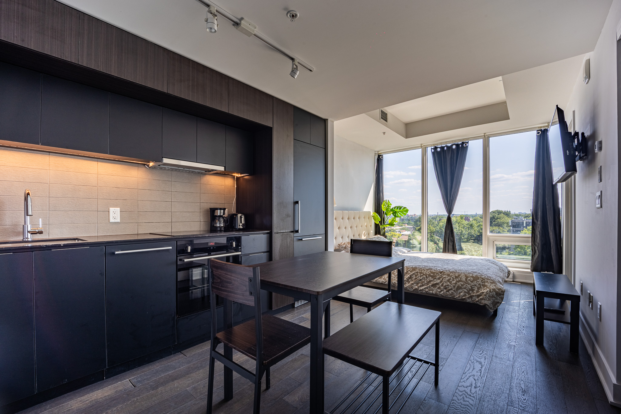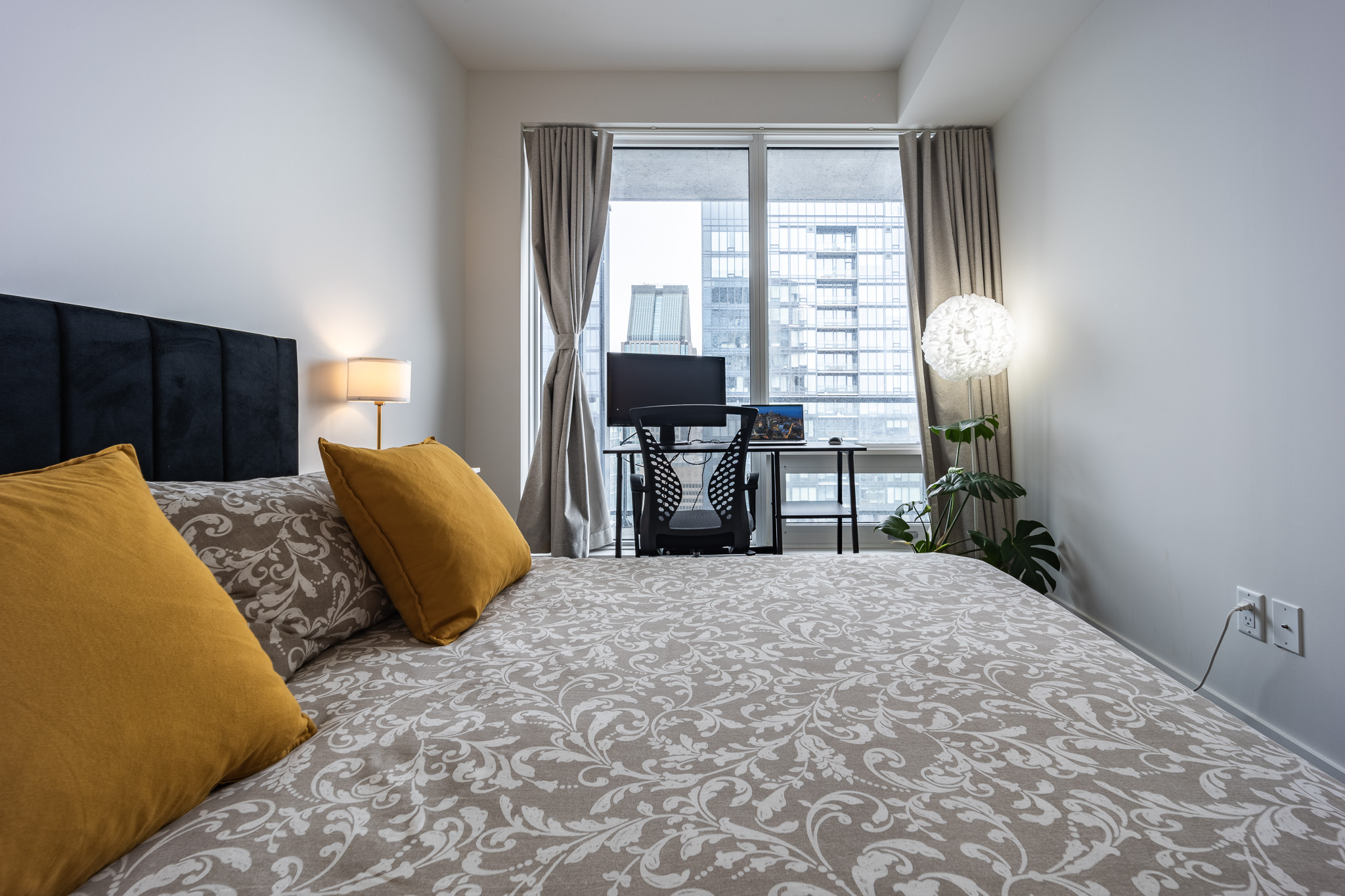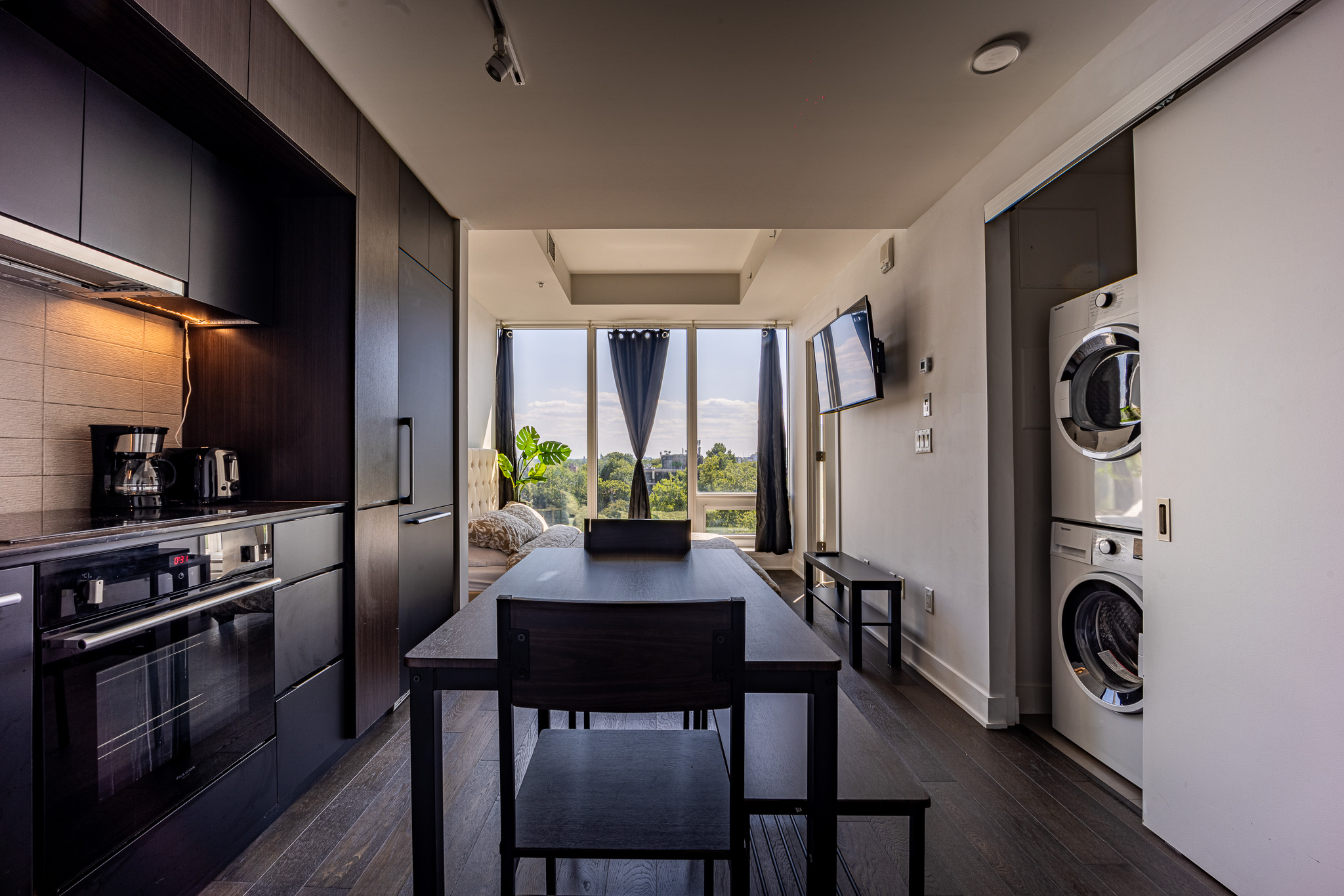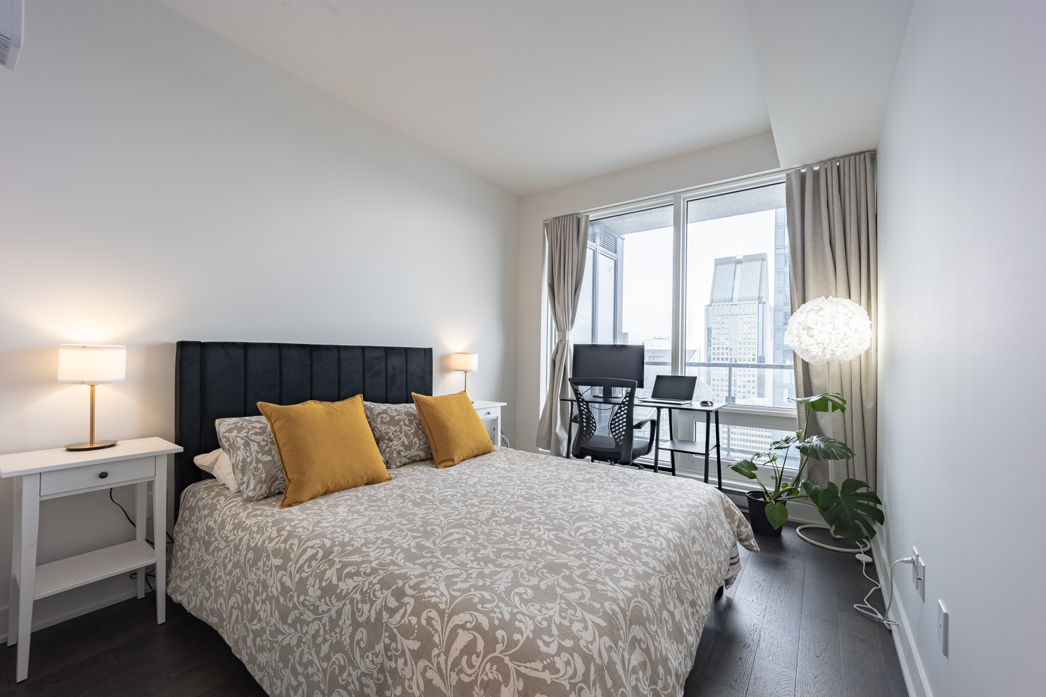 Located in downtown Montreal, this beautiful apartment is only a 5 min walk from Lucien l’Allier metro station, a 9 min walk from Bonaventure metro station and a 9 min walk from grocery store. Cleaning services and parking are also available upon request for an additional fee.