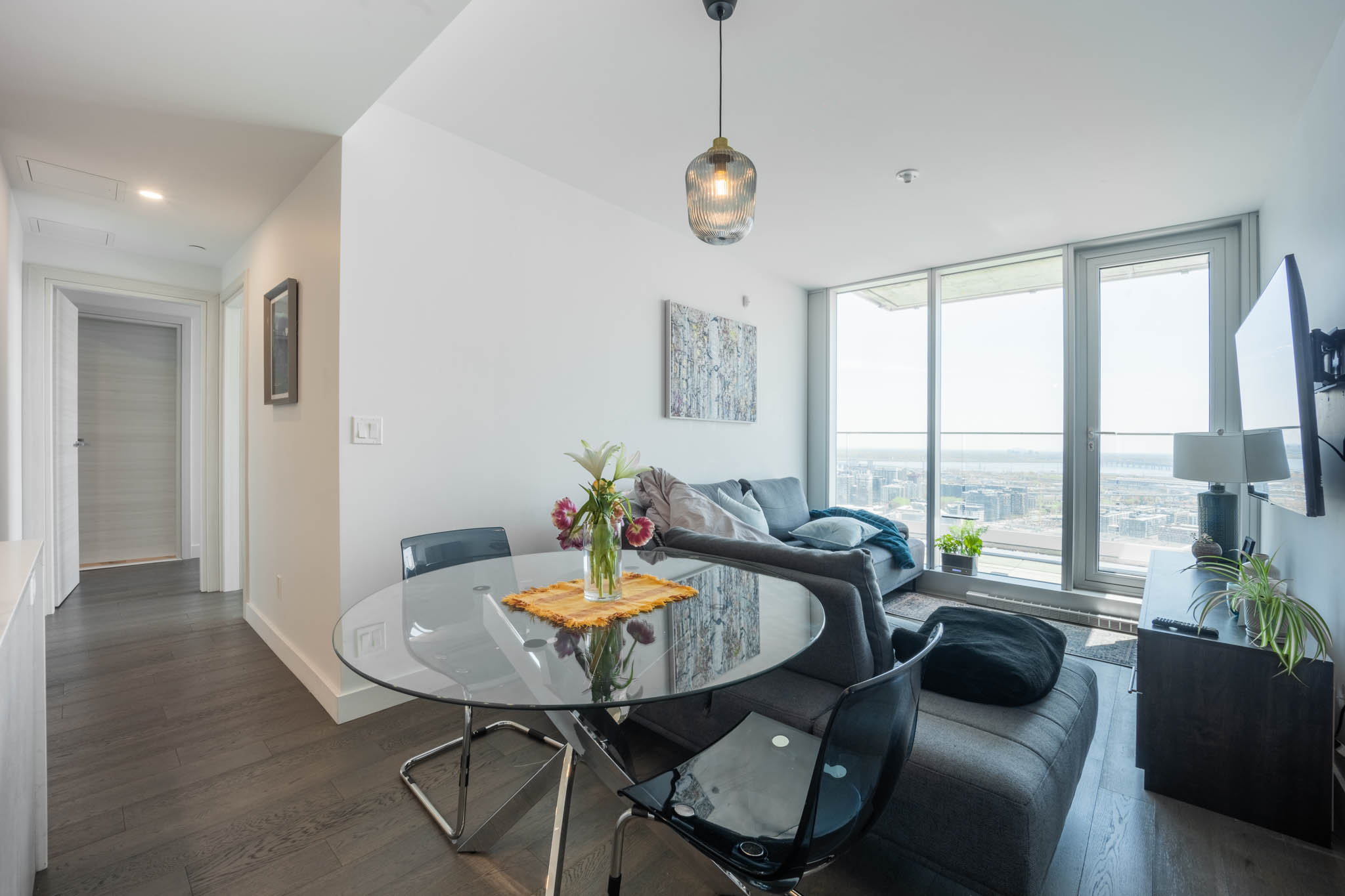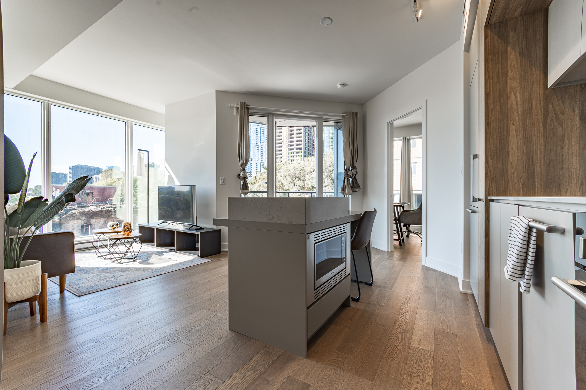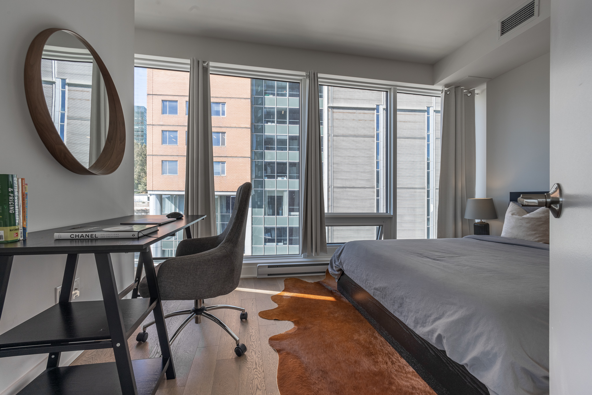 Located in downtown Montreal, this beautiful apartment is only a 5 min walk from Lucien l’Allier metro station, a 9 min walk from Bonaventure metro station and a 9 min walk from grocery store. Cleaning services and parking are also available upon request for an additional fee.