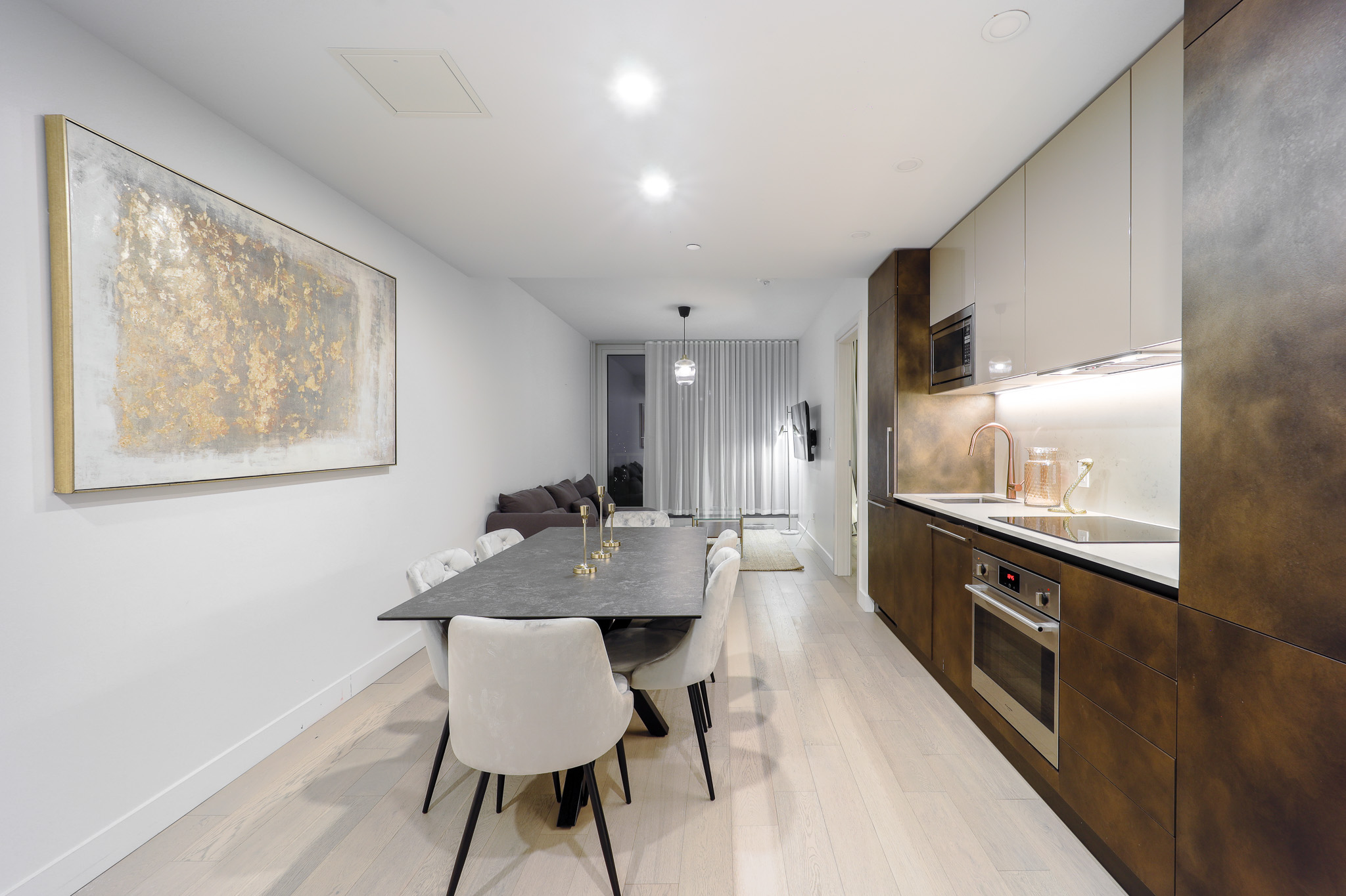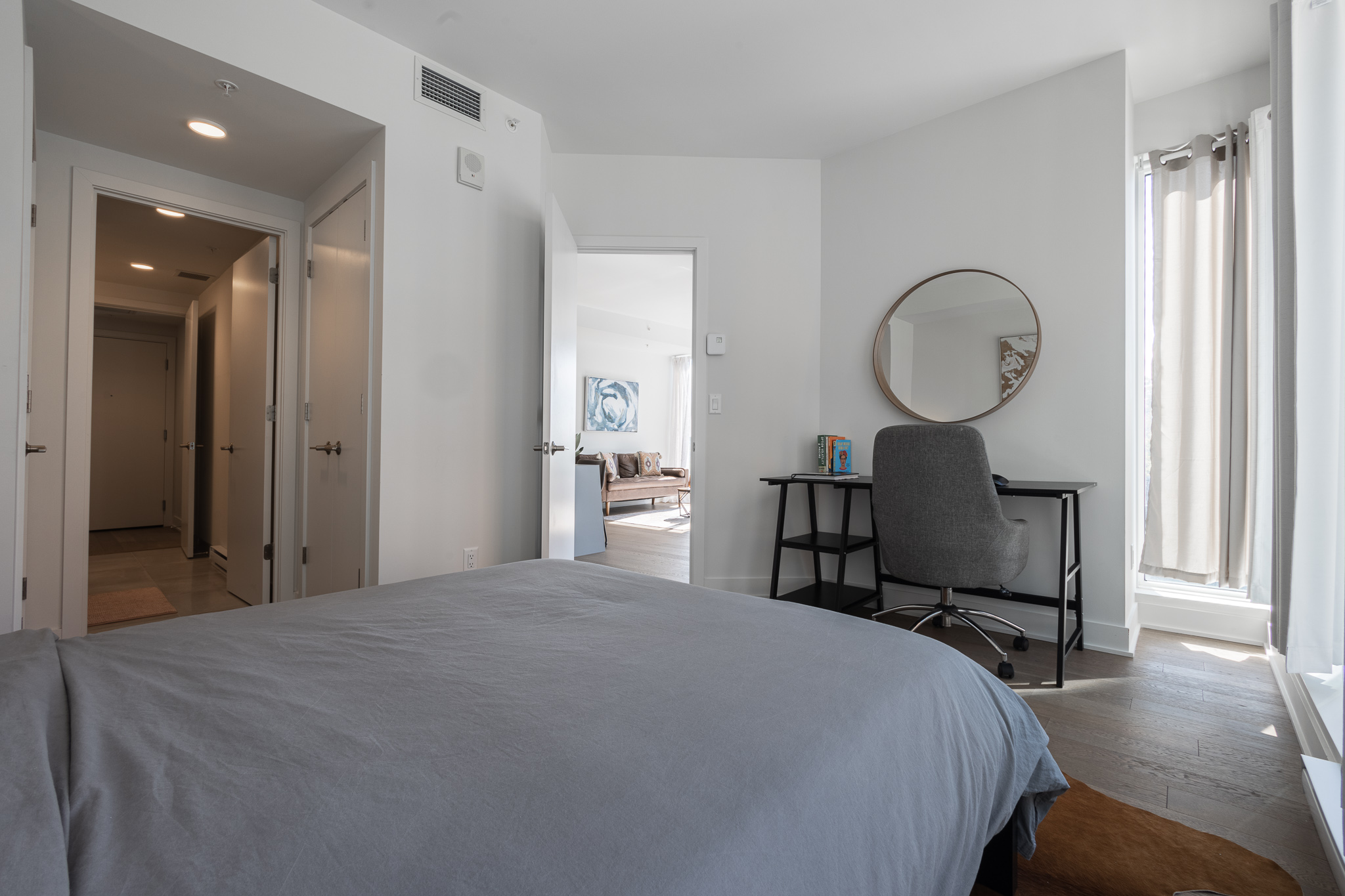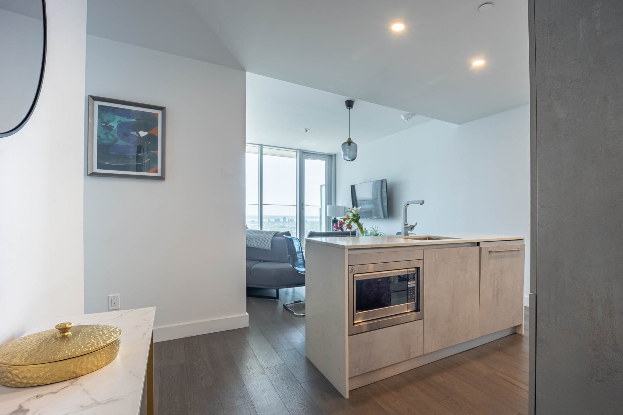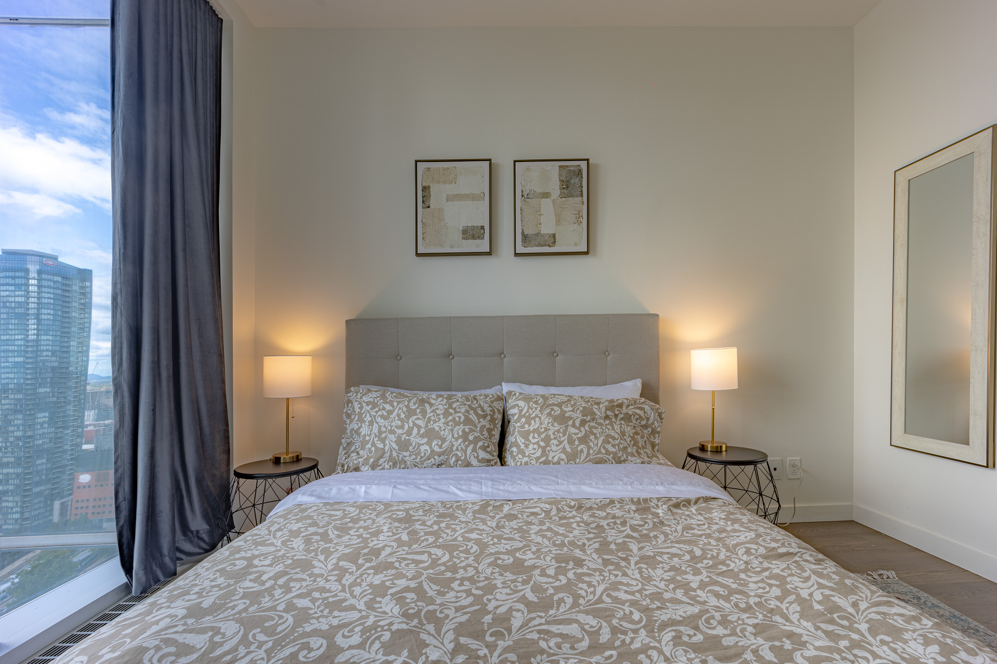 Located in downtown Montreal, this beautiful apartment is only a 5 min walk from Lucien l’Allier metro station, a 9 min walk from Bonaventure metro station and a 9 min walk from grocery store. Cleaning services and parking are also available upon request for an additional fee.